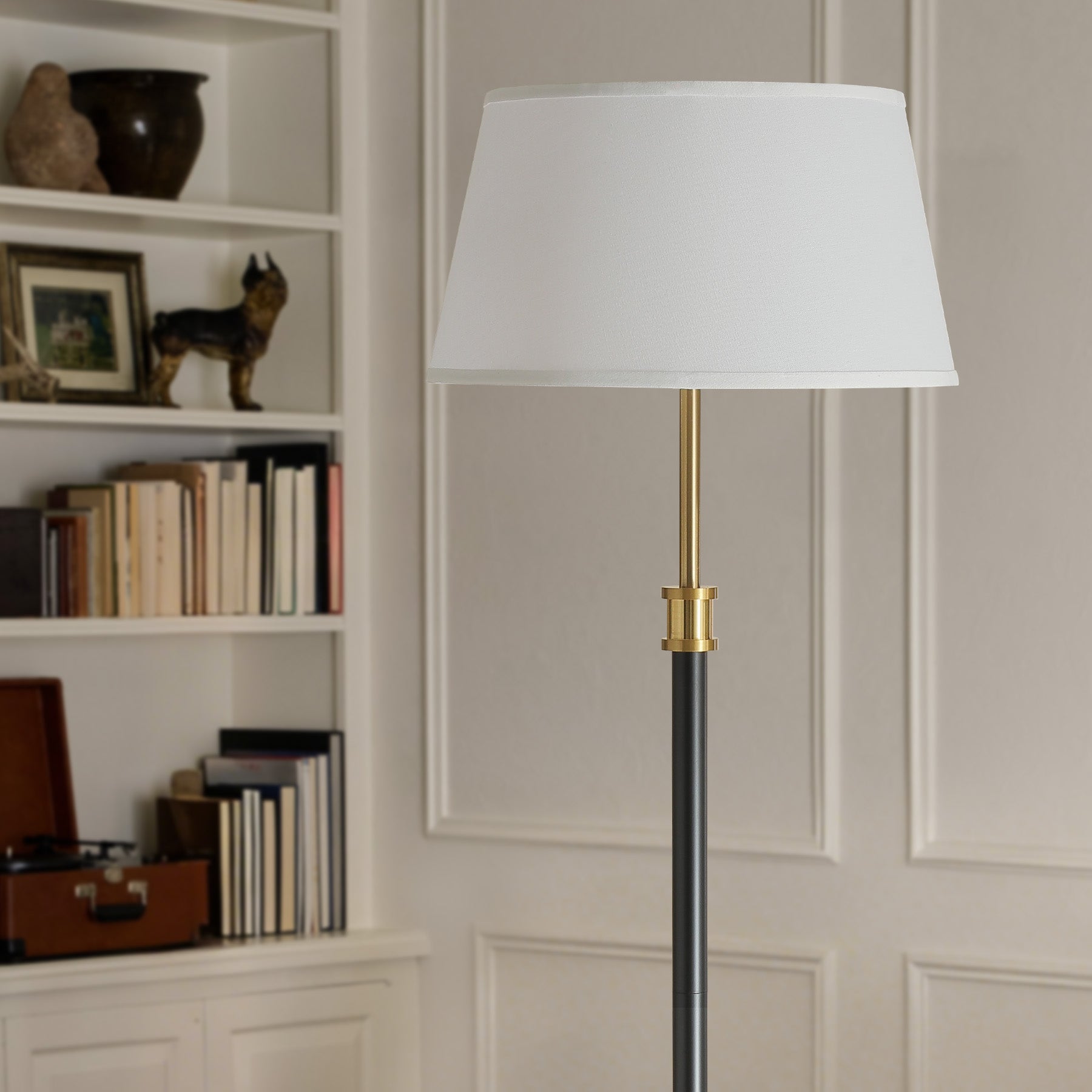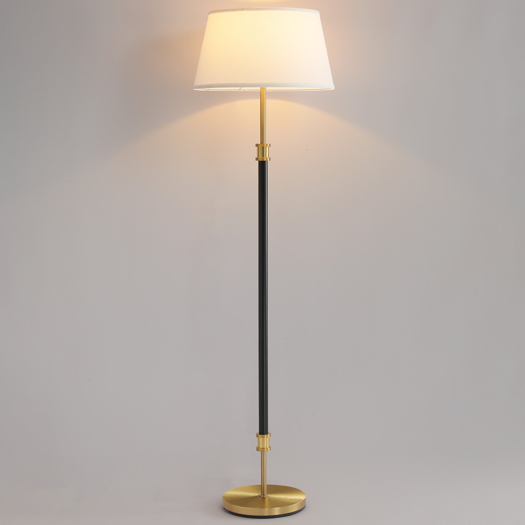 - Modern Mid-Century Design (Black & Brass): Clean lines, a refined black pole, and brushed brass accents create a timeless silhouette inspired by mid century modern lighting. A true designer-style piece that elevates any neutral or warm interior.
